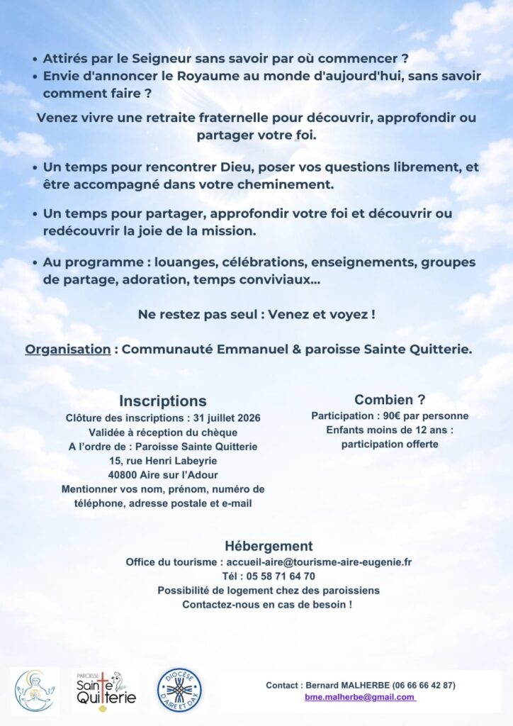 - Une session organisée par la communauté de l’Emmanuel et la paroisse sainte Quitterie.
